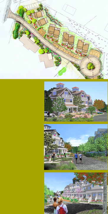 Herring Cove Village is a new luxury residential development located at the tip of Cape Cod, in the West End of Provincetown. The market rate condominium homes feature 360 degree views of the picturesque Moors salt marsh, the primary and secondary dunes of Herring Cove Beach, the Bay and Provincetown Harbor and Pilgrim Monument. The landscape theme for the development combines Cape Cod traditional with the naturalistic character of the grassy Moors’ salt marsh and the unique landscape of the primary and secondary dunes of Herring Cove Beach. The low impact development features pervious pavements and indigenous plant materials that minimizing the need for supplemental irrigation. Each home features a private front garden enclosed by a low picket-fence typical of Provincetown and the Cape. The fence, draped with rambling roses contains a traditional Cottage Garden of colorful, multi-seasonal, perennials. Beyond the garden the landscape echoes the rustic Secondary dunes in full view beyond, with a blend of native ornamental grasses, sedges, perennials and groundcover typical of that environment. |